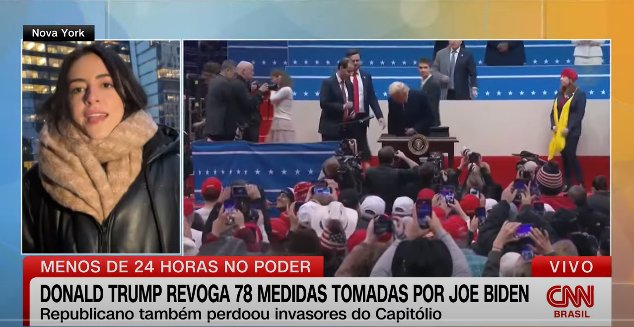 01.21.25 — Live for CNN Brasil | Live | Reporting on Trump’s second term and his executive orders issued on his first two days back in office.
