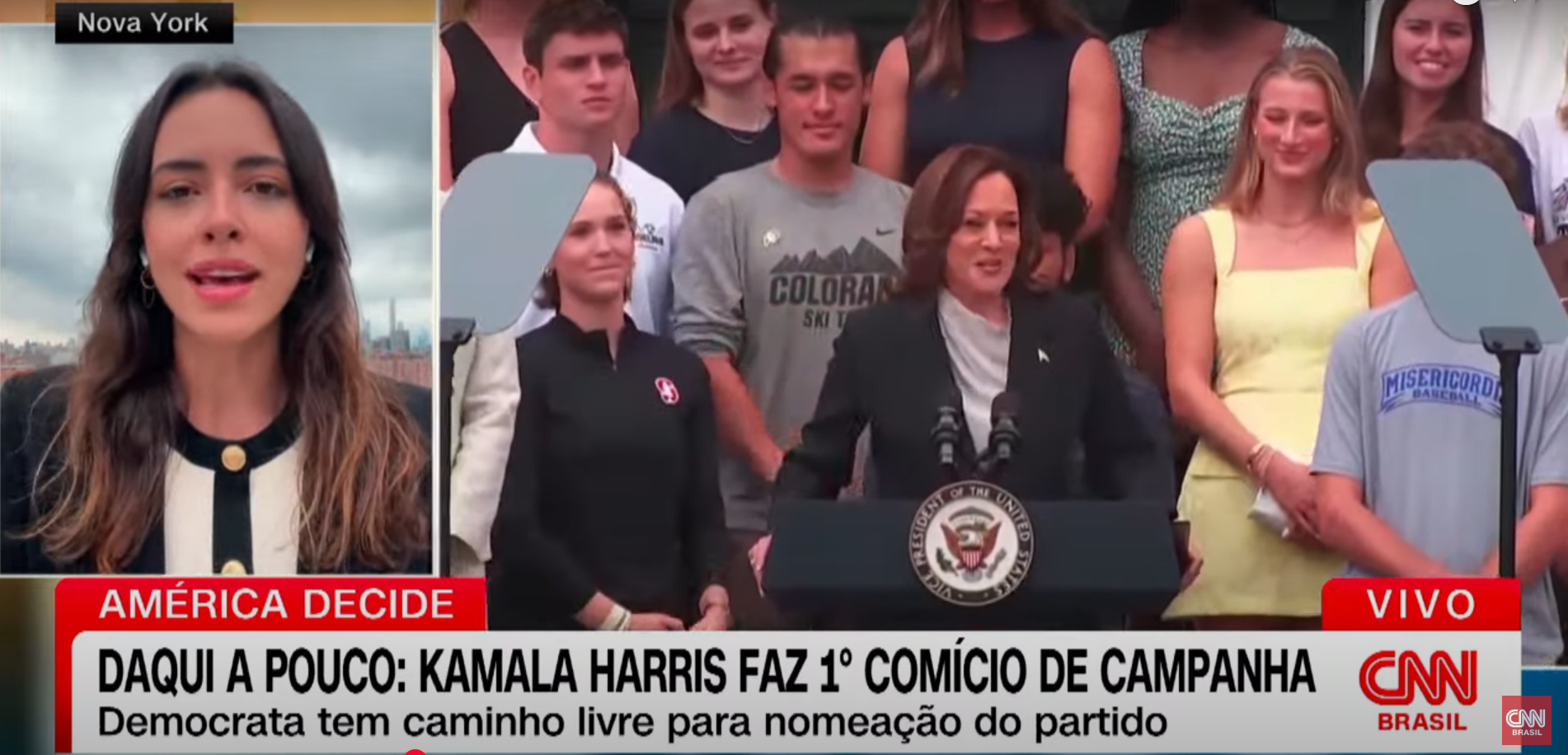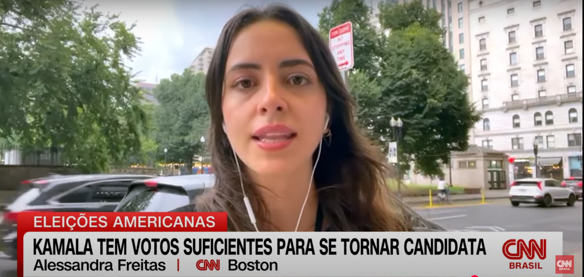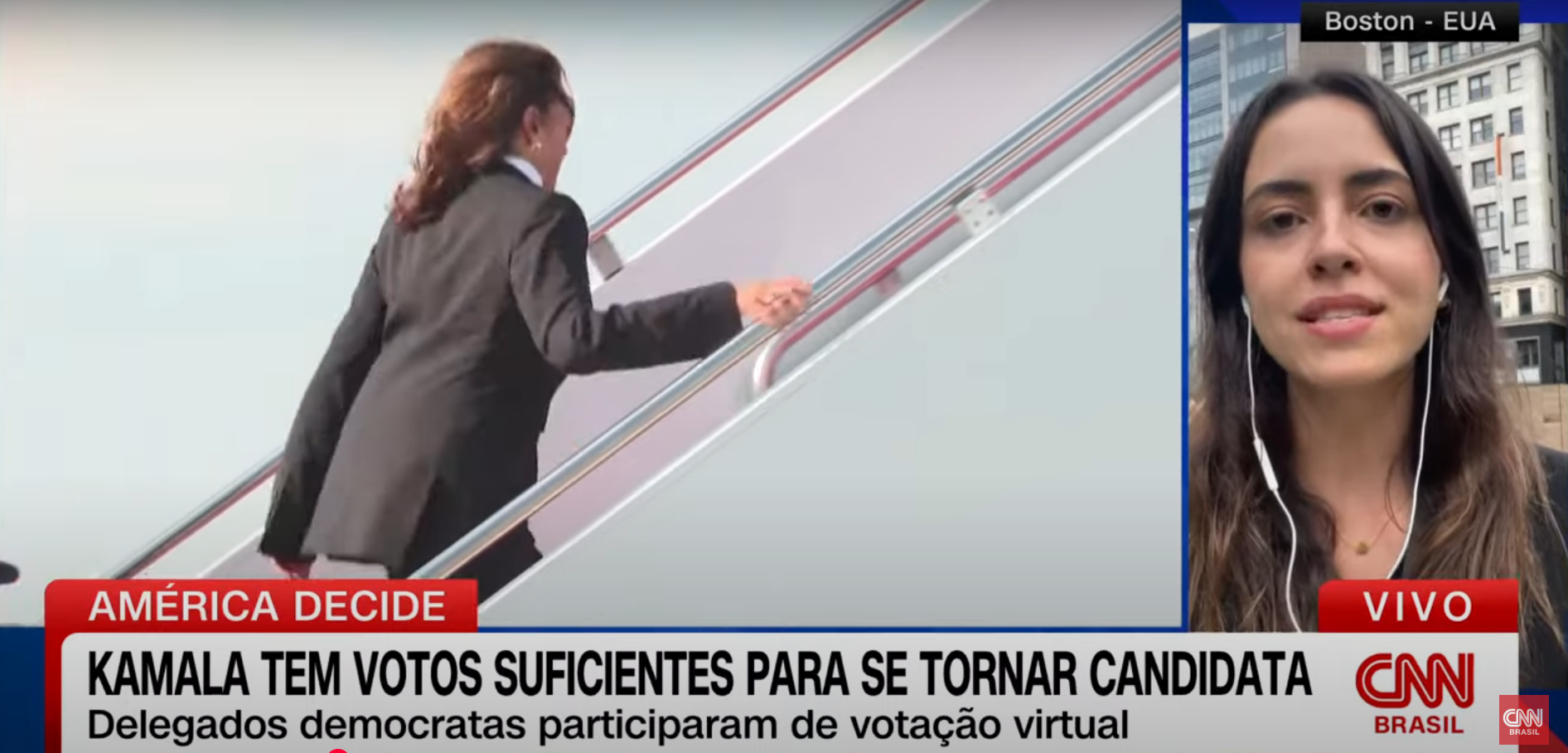07.23.24 — Live for CNN Brasil | Novo Dia — Reporting on Kamala Harris getting enough Dem. delegates to run for party nominee.