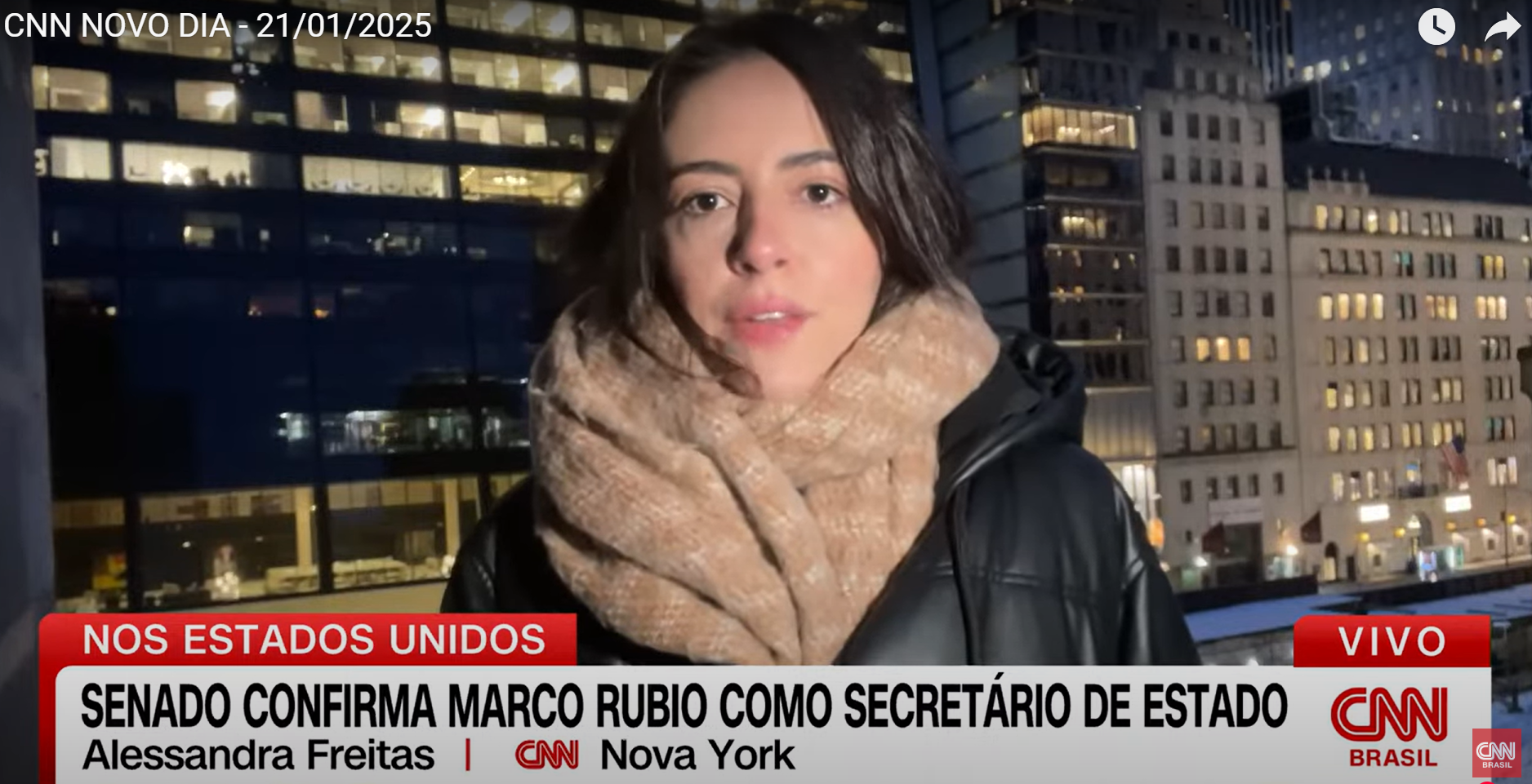 01.21.25 — Live for CNN Brasil | Bastidores | Reporting on Marco Rubio being sworn in as U.S. Secretary of State.